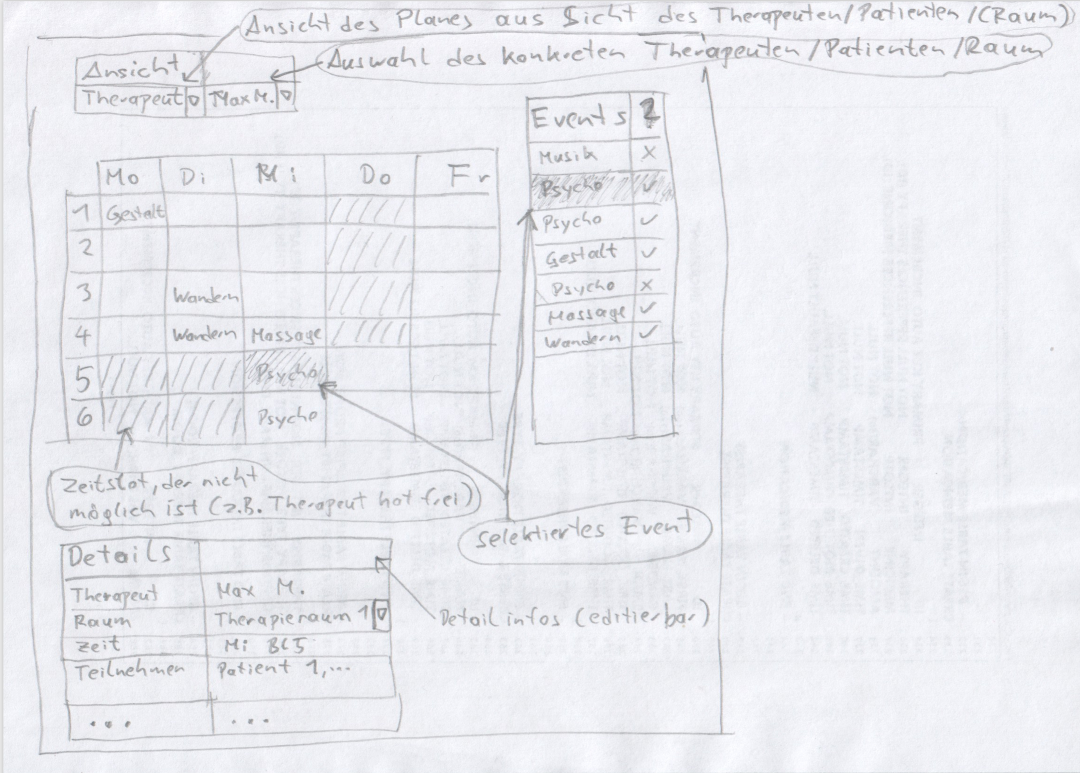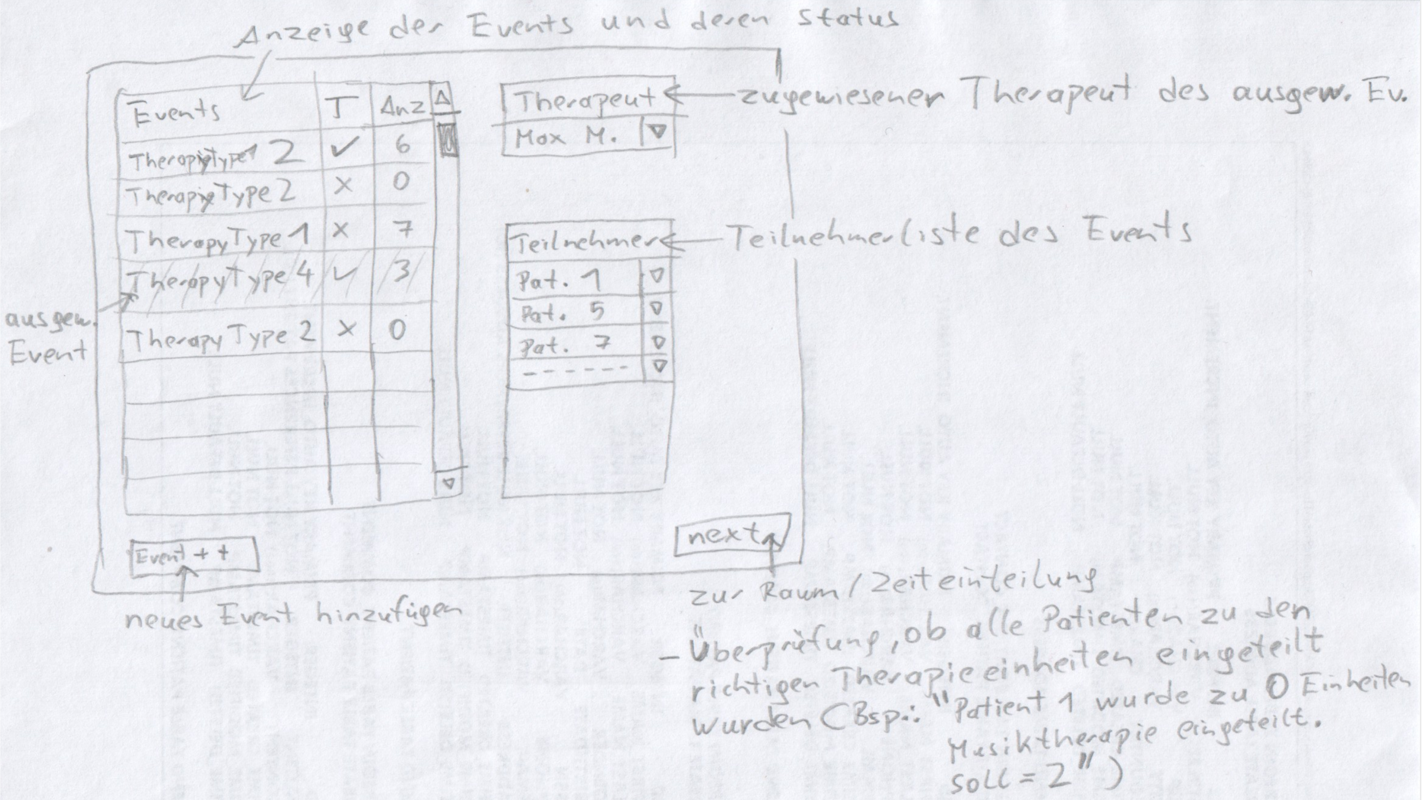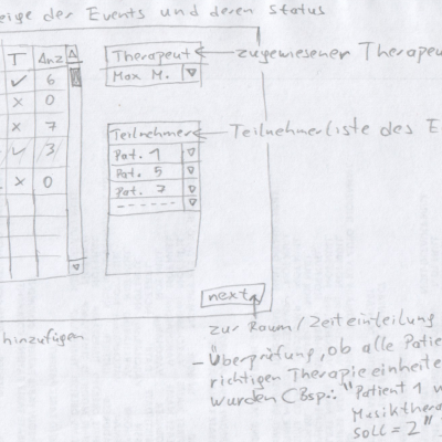 The back office had to include common administrative functionalities like manage patient, staff and room information. Furthermore, special requirements were to track and analyse the mental healthiness of patients and assist the generation of therapy plans based on the gathered information. Other functionalities were a floor plan, time schedules and to issue invoices.